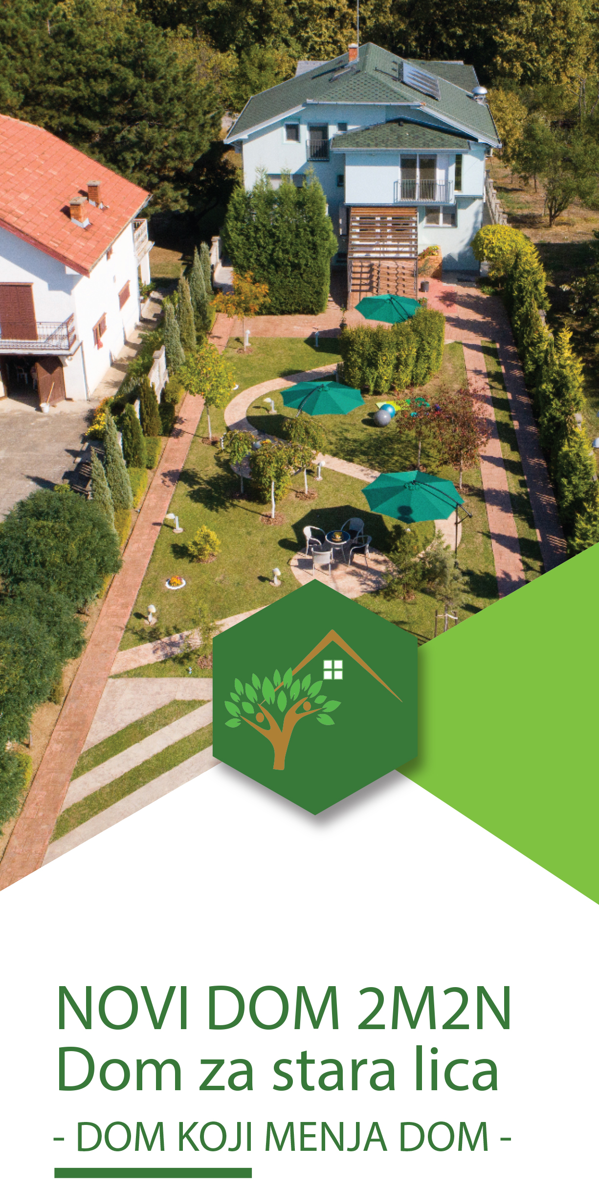 Dom za stare „NOVI DOM 2M2N“ nalazi se na Meljaku, u neposrednoj blizini Lipovačke šume, pa će vaši voljeni biti u pravoj oazi čistog vazduha i mira. Udaljeni smo svega pola sata vožnje autom od centra Beograda, pa verujemo da ćete rado dolaziti u naš starački dom, kako u posetu voljenima, tako i da pobegnete od gradske vreve i gužve i osetite sve blagodeti šumskog vazduha. Ispred doma se nalazi prostrano dvorište sa kružnom stazom za šetnju, planski uređeno, sa više pojedinačnih klupa, ali i stolova i stolica, koji su pod senkom, ili suncobrana ili prirodnog hlada. Prostrano dvorište ukućanima pruža mogućnost izbora da li žele da se osame na čistom vazduhu, ili uživaju u društvu ostalih stanovnika. U pitanju je novi objekat (novogradnja) po najsavremenijem sistemu gradnje. Namenski i planski građen i uređen, kako bi zadovoljio sve potrebe kolektivnog stanovanja većeg broja ljudi istovremeno. Sa sopstvenom kuhinjom, prostranim i svetlim dnevnim boravkom, komfornim jednokrevetnim, dvokrevetnim i trokrevetnim sobama za smeštaj - pokretnih, polupokretnih i nepokretnih lica tj. osobama kojima je potreban konstantan medicinski nadzor.